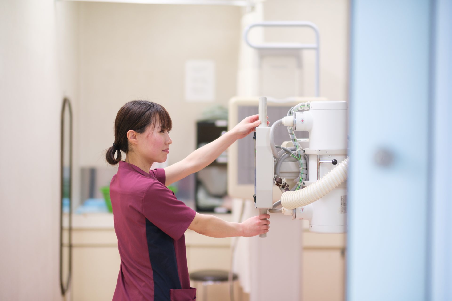 胸部、腹部、骨系の撮影を、従来の撮影に比べ被ばく量が少ないCR(Computed Radiography)で行っています。撮影した様々な部位の画像はコンピューターで診断に適した画像処理を行い、精度の高い画像を提供しています。
