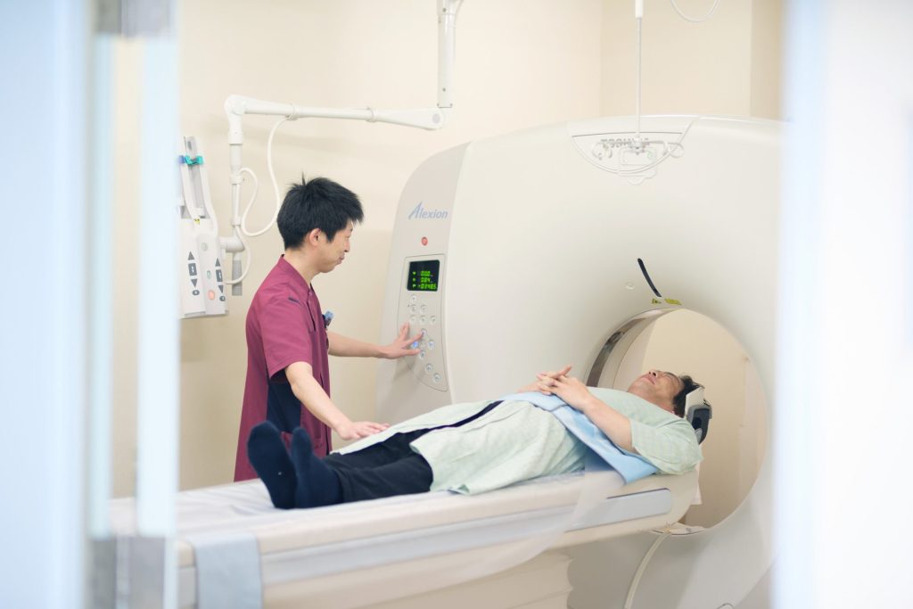 MRI(Magnetic Resonance Imaging)は人体の原子核の磁気共鳴という現象を利用した画像診断法です。外観はCTに似ていますが、CTのようにX線を利用して画像を得るのではなく、磁石とラジオ波を利用して人体の断層写真を得る検査です。