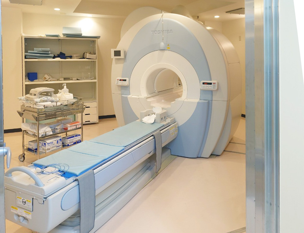 MRI(Magnetic Resonance Imaging)は人体の原子核の磁気共鳴という現象を利用した画像診断法です。外観はCTに似ていますが、CTのようにX線を利用して画像を得るのではなく、磁石とラジオ波を利用して人体の断層写真を得る検査です。