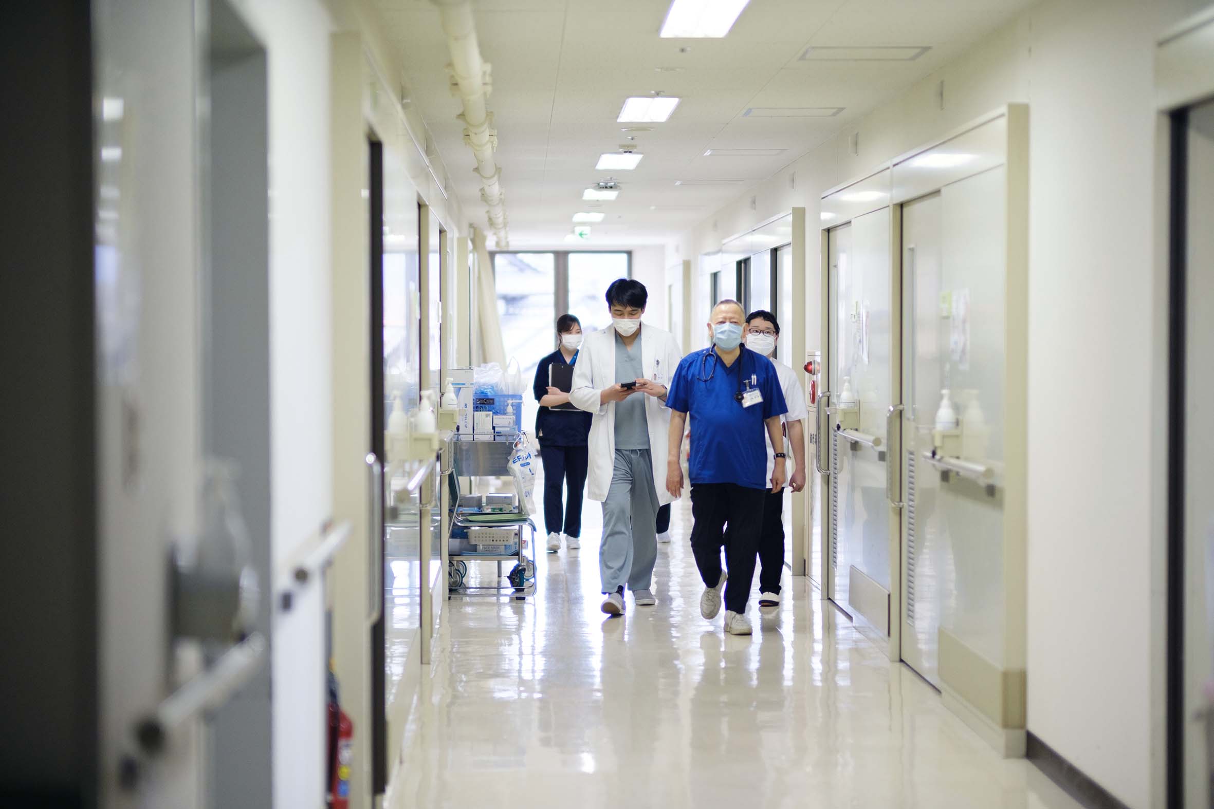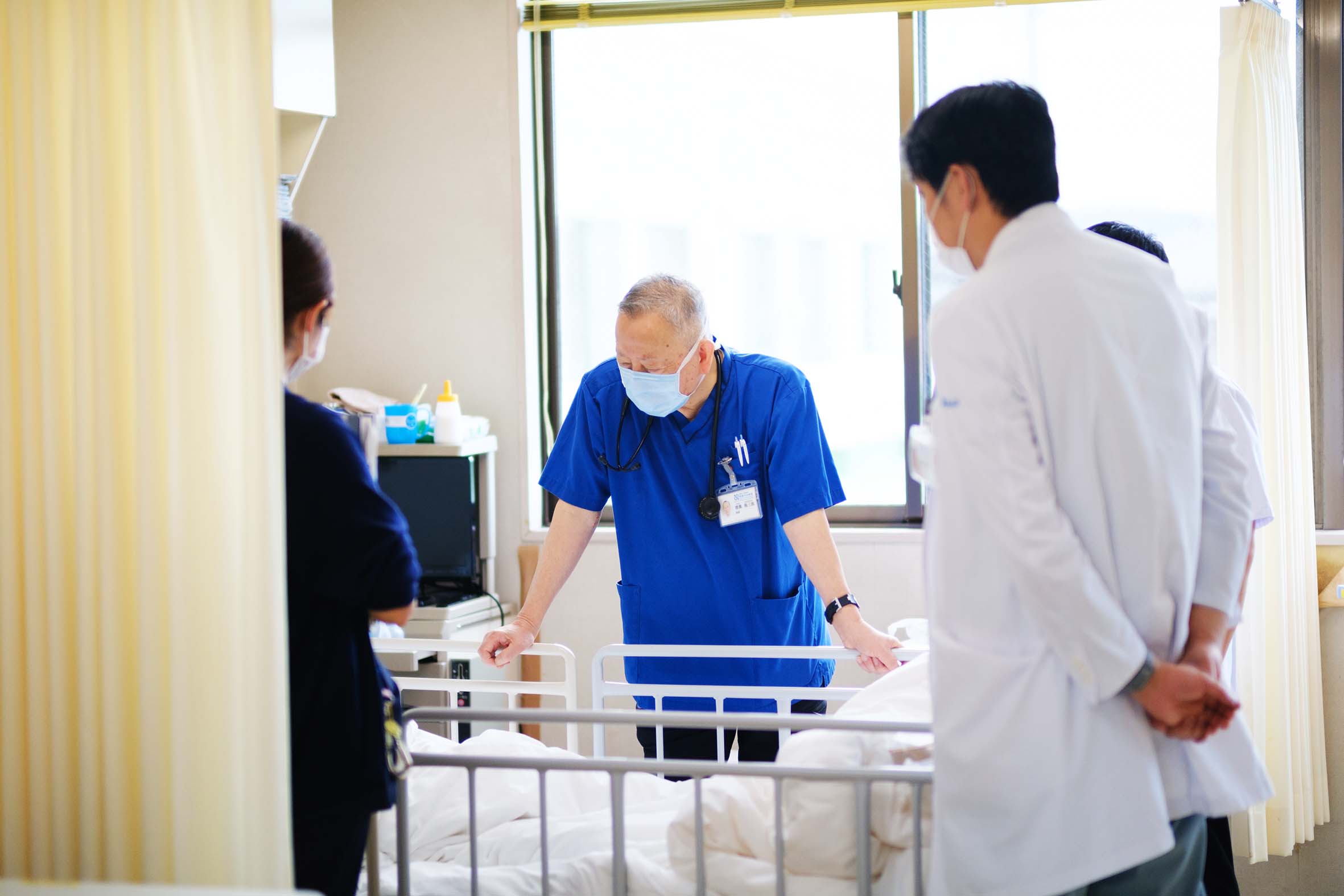 当院の一般病棟は、「固定チームナーシング(継続受け持ち制)」を取り入れ、患者さま一人ひとりの入院から退院まで継続した看護を行っています。患者さまの個別性をふまえ、その人らしく過ごせるように質の高い看護を提供します。